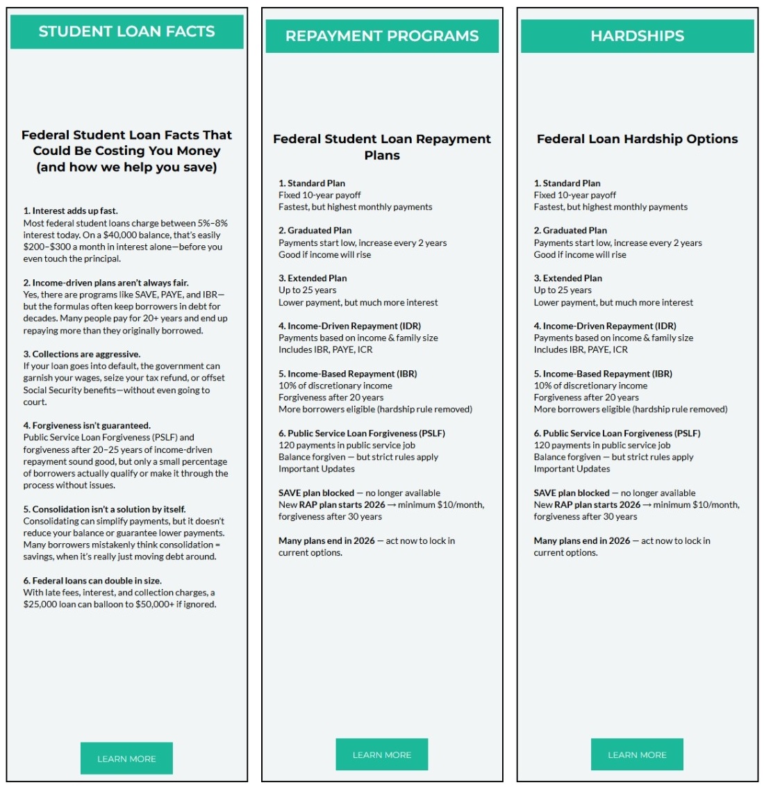 The repayment program options are detailed and varied. The good news is that we’ve helped over